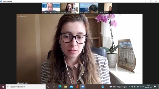 06/8/2021 Bapak Ketum Gatot Cahyo Sudewo SE. M.MTr. , dan Ketua Dept Kapal Ikan Bapak Moh. Sumardi Hadir dalam acara Studi penelitian ILO tentang penguatan mekanisme deteksi kerjapaksa di industri penangkapan ikan / ILO study on strengthening the detection of forced labour in fishing, pada gambar tampak HANNAH BOLE – RESEARCH CONSULTANCY, PRAXIS LABS, IRELAND UK – konsultan yang di tunjuk ILO untuk melakukan research.