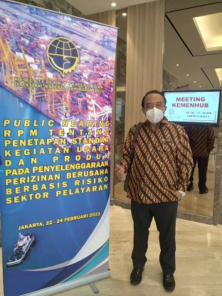 23/02/21 Ketua Umum Bapak Gatot Cahyo Sudewo SE, MMTr. menghadiri Undangan perubahan tema Publik Hearing tentang NSPK berbasis resiko Bidang Pelayaran berlokasi Hotel Grand Orchardz Kemayoran