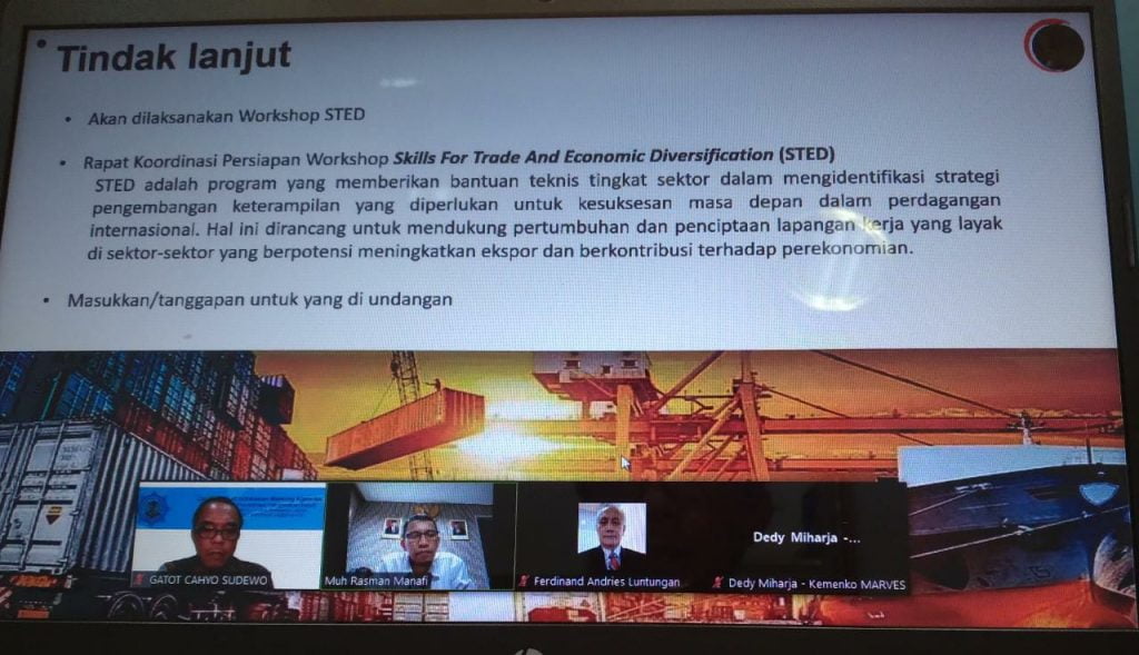 Kementerian Koordinator Bidang Kemaritiman dan Investasi bersama dengan International Labour Organization (ILO) melalui program UK Skills for Prosperity (UKSfP) telah melaksanakan Forum Group Discussion (FGD) pemetaan potensi kelautan maritim Indonesia dalam Pendidikan dan Pelatihan Teknik dan Kejuruan, untuk pengembangan industri maritim sesuai dengan kebutuhan Indonesia, melalui perencanaan, pengelolaan, pemanfaatan dan pengendalian dalam bidang Seafaring tanggal 25 – 27 Januari 2022 di Semarang, bidang Logistic dan International Trade tanggal 12 – 14 April 2022 di Batam, dan bidang Ship Building tanggal 19 – 21 April di Surabaya, dan Rapat Validasi Data dan Informasi Hasil Pemetaan SDM Pendidikan dan Pelatihan Teknik dan Kejuruan Kemaritiman tanggal 6 Juni 2022.
